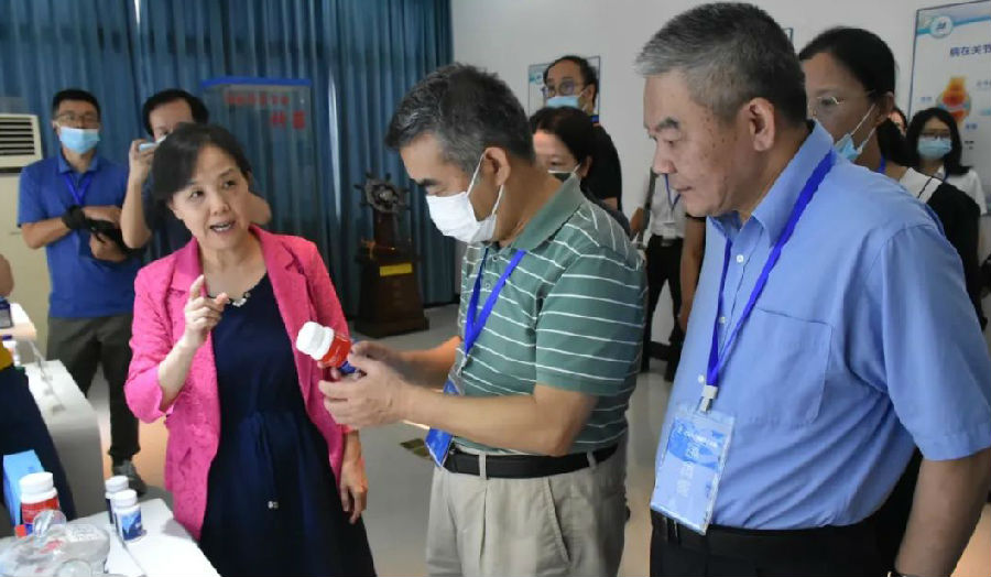藍灣科技林秀芬董事長向代表團介紹了17年來始終專注堅持做好海洋生物多糖研發(fā)創(chuàng)新,將中國氨糖、殼寡糖技術帶到行業(yè)前列的產業(yè)化歷程。